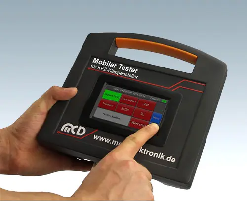 Analog as well as PWM-controlled assemblies and components can be tested directly in the vehicle with this mobile testing device. In addition, its flexible programming makes it possible to carry out functional testing on different actuators or valves. The device automatically detects the contacted DUT and selects the required testing program. An easy-to-read 4.3'' LCD touchpanel with a Pass/Fail monitor and a graphic user interface guides the operator and displays the measurement data. Various testing cables for diagnosing control units for automotive or medical applications are available for the mobile testing device.