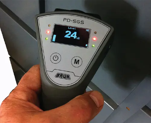 The PD-SGS online PD handheld scanner by BAUR is used for the fast testing of live switchgear for partial discharge activity. Potential weak points are indicated acoustically and numerically. In addition, the user receives a recommendation for action for the tested switchgear according to the traffic light principle. This allows the fast status assessment of entire substations, so that further examinations or immediate maintenance measures can be planned effectively and cost-efficiently on the basis of the measurement results.