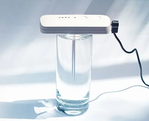 goSilver® is a new generation of devices for the production of colloidal silver solution by means of electrolysis. Operation is particularly simple and intuitive. The goSilver tool has a total of 16 predefined programs for the most frequently requested concentrations and water quantities. These are 25, 50, 100 and 200 ppm and 250, 400, 600 and 1,000 ml. After the required ppm concentration has been reached, the process shuts off automatically; no external switch or stopwatch is required. There is also an option for setting an individual electrolysis duration (limited to a maximum of 5 h). A non-slip surface on the underside of the enclosure ensures stability during the electrolysis process.