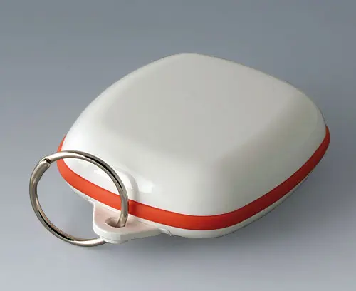 Modern small enclosure specifically designed for "wearable technologies". Three-part design consisting of highly polished top and bottom parts and a matt TPV sealing ring.