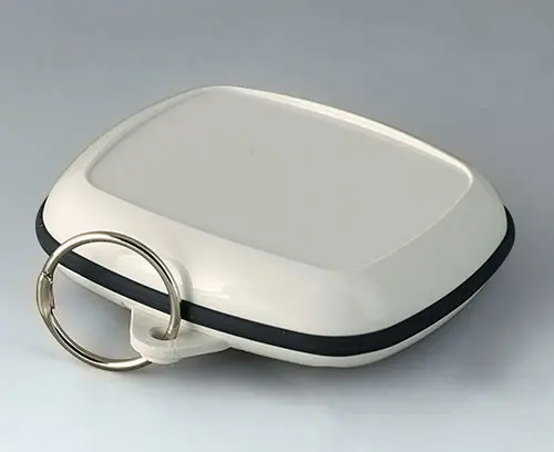 Modern small enclosure specifically designed for "wearable technologies". Three-part design consisting of highly polished top and bottom parts and a matt TPV sealing ring.