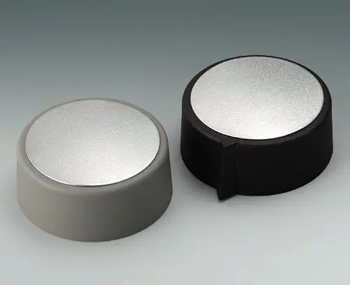 COM-KNOBS 40, with recess Suitable for rotary potentiometer with round shaft ends according to DIN 41591. Collet system for convenient knob assembly from the front. Borehole without chamfer.