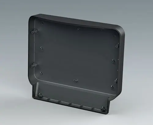 Order with COMMUNITEC S basic housing. Features a recessed area for protecting membrane keypads and integrating large-format displays up to 11.5" (29 cm), with a flat area below for front-mounted control elements and connectors. Includes integrated fastening pillars for PCBs or mounting plates. The operating panel is installed from the rear.