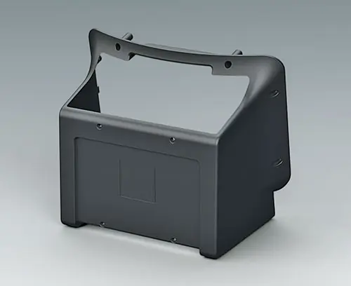 Basic housing with plenty of space for large-volume electronic assemblies. Large side areas are easy to machine, for example for connector interfaces, ventilation slots to increase heat dissipation, and more. The rear of the housing includes a recessed area to protect installed sockets, plugs, and power supply cables; an additional recess is provided for product labels. Integrated fastening pillars are provided for PCBs or mounting plates.