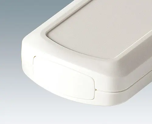CONNECT S Basic enclosure, 2-piece, with convex and flattened shell. Recessed surface to protect the membrane keyboard, decor foil or label. Both end sides open, and end parts or the cable gland kits can optionally be mounted there (accessories). Four attachment domes for mounting a PCB in the flattened shell. Plastic enclosure snaps together.