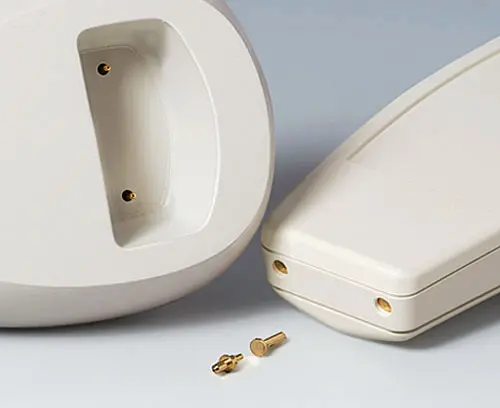 DATEC-COMPACT M 2-part compact hand-held enclosure with an ergonomic, robust design. Secure grip through finger recess in the bottom part. Recessed user area to protect the operating elements. Attachment domes for PCBs and components in the top and bottom parts.