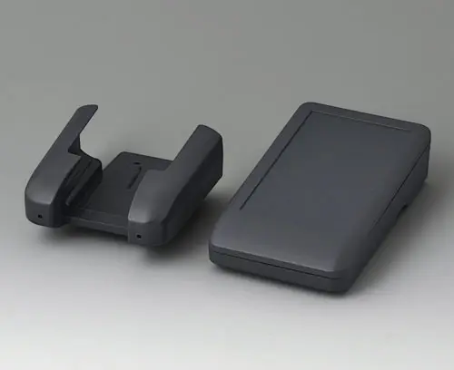 DATEC-COMPACT S 2-part compact hand-held enclosure with an ergonomic, robust design. Secure grip through finger recess in the bottom part. Recessed user area to protect the operating elements. Attachment domes for PCBs and components in the top and bottom parts.