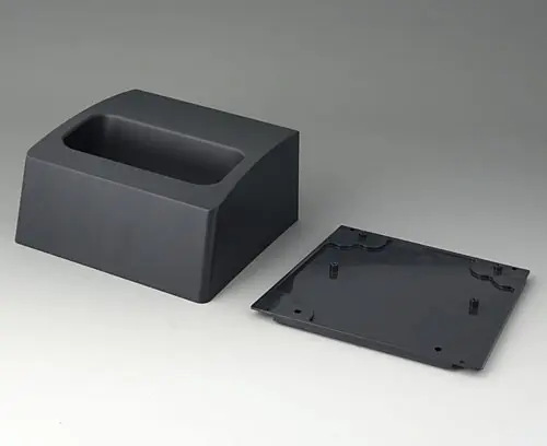 DATEC-COMPACT L 2-part compact hand-held enclosure with an ergonomic, robust design. Secure grip through finger recess in the bottom part. Recessed user area to protect the operating elements. Attachment domes for PCBs and components in the top and bottom parts.