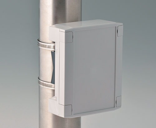 For the secure and stable mounting of IP rated electronic enclosures to poles, masts, and pipes using cable ties or stainless steel screw bands, suitable for pole diameters from 30 mm. The bracket is attached to the rear of the enclosure (four drilled holes required) and is manufactured from UV resistant material.