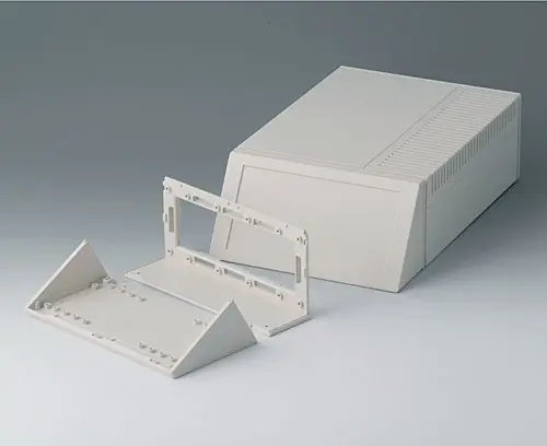 Ergonomically sloped operation front. 2-part construction for easy access of components. Recessed area for membrane keyboards. Reading angle wall: 60°, desk top 30°.
