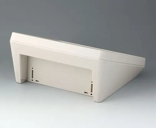 Modern two piece plastic enclosure with an ergonomically inclined operating panel. Fastening pillars for PCBs and components in the top and bottom parts. Recessed interface area. Wall suspension element and sealing (to raise the protection class up to IP 65) included in the range of accessories. Hidden stainless steel assembly screws with secure Torx heads. Can also be used outdoors thanks to the high-quality material and the robust design.