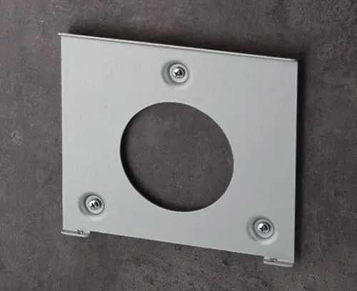Holder for secure, flush mounting on the wall. The enclosure is screwed to the wall suspension element in the recessed interface area. Advantage: hidden mounting with no visible fixings.