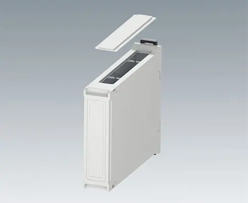 RAILTEC BP, M22, closed/with ventilation slots DIN rail enclosure with pluggable side panels (1 side panel closed, 1 side panel with ventilation slots) and front panel. For plug headers max. 1 x 16-pin, 5.08, fixed or pluggable. Simple and quick assembly by locking onto DIN rails EN 60715 TH35. The panel version provides simple and flexible installation of the electronics as well as efficient, screwless case assembly.
