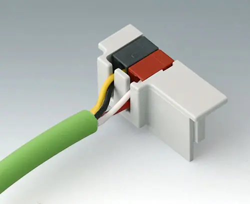 RAILTEC B, 2 modules, Vers. VI Enclosure with open connection sides - for max. 4 terminal guards in flat version, 2 terminal guards in high version or 2 partition plates (acc.). Fast and simple locking capability onto DIN rails EN 60715 TH35. Flexible assembly of PCBs in all 3 directions.