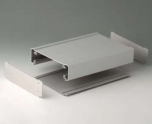 Horizontal guides and screw channels provided inside the case for fitting PCBs. Flat areas for easy installation of interfaces. Recessed area in the top for the protection of displays, membrane keypads and operating elements.