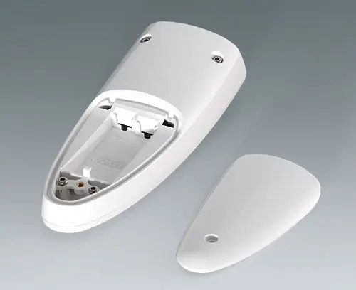Three-piece hand-held enclosure with an ergonomic, robust design and a pleasant touch sensation. Offers protection up to IP 65 with sealing kit (accessory). Protection class IP 40 without sealing kit. Attachment pillars for PCBs and components in the top and bottom parts.