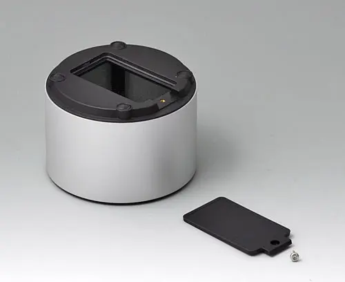 4-part enclosure for many different applications. Sturdy frame made of aluminium, glass bead-blasted and anodised. Plastic parts made of ASA+PC-FR with high UV protection and high flame resistance. Attachment domes for PCBs and components in the top and bottom parts. Top part with recessed surface to protect the membrane keyboard. Bottom part with opening and screw-down cover: practical for the use of a battery compartment or for access to the interior, e.g. for a memory card or batteries that are mounted directly on the PCB. Battery compartment kit 2 x AA with contact springs, battery clips, button cell holder and wall mounting option as accessories.