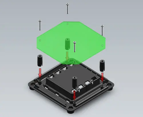 For increasing the height of the attachment domes for PCBs. Required when installing a PCB above the battery compartment (acc.) in the bottom part.